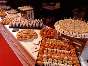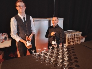 Après avoir installé les longs buffets pour présenter de nombreuses pièces salées et sucrées, mettre en place les bars pour y servir des vins locaux... Nos élèves sont fin prêts à accueillir près de 500 convives qui après avoir écouté attentivement les différents discours sont "affamés" et "assoiffés".