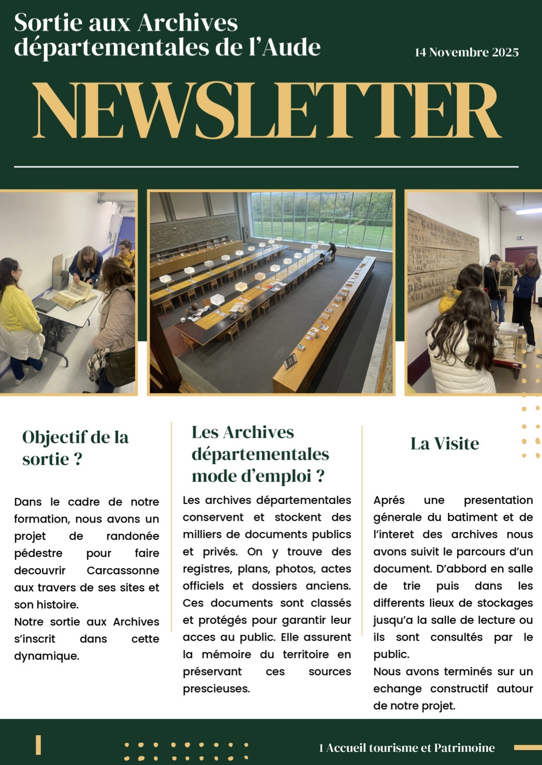 Première Accueil Tourisme et Patrimoine : Organisation d’une sortie aux Archives départementales de l’Aude